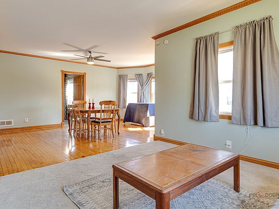 So much charm and possibilities (2 kitchens and a separate entrance to the upstairs) with this home. First level features 2 bedrooms, a full bathroom, living room, dining room, kitchen and bonus room (with closet - possible 3rd bedroom) leading to the upstairs. The large dining room has plenty of natural light and maple floors and is open to the living room. The kitchen features plenty of cabinets and counterspace, room for a table, newer french door with integrated blinds out to deck and backyard, and a window over the kitchen sink. Upstairs you will find another full kitchen with a pantry, living area including dining space, 2 more bedrooms, a large walk in closet and another full (updated) bath. Seller believes that most windows and trim throughout, siding and roof were replaced within the last 10-15 years, furnace and central air in 2017, washer, dryer, 1st floor stove and refrigerator in 2016, and the upstairs little refrigerator in 2020. All of this located on a double lot which features a good sized fenced yard and big deck for summer entertaining, firepit, 2 car garage plus the parking spot which can fit 4 or 5 cars. With the 2 kitchens and a separate entrance to the upstairs, this single family home could possibly be a multi unit with a few modifications. All this and close to shopping, restaurants, downtown and the Metra.