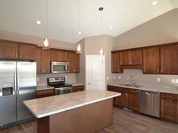 NO STEPS and PRIVATE BACKYARD best describes this HIGH QUALITY twinhome with a large vaulted ceiling over the entire kitchen, dining and living area! Large kitchen with ample STORAGE and center island. The spacious master suite has its own private bathroom and walk in closet. Garage has hot/cold water, sink and floor drain. The private backyard includes a 10 x 12 patio with privacy features. Special assessments are very low. GREAT LOCATION. Home to be completed April 1st, 2017. Photos from a previous build. Agent/Owner