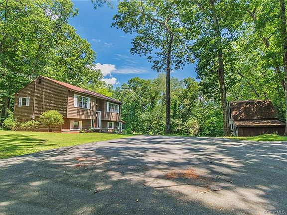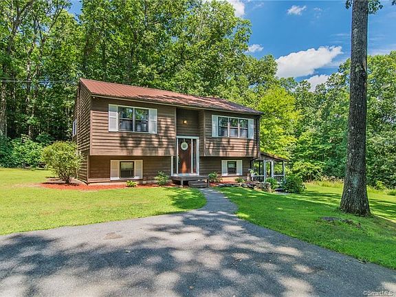 This home offers a quiet, remote, country feel in Woodstock, CT close to the Massachusetts border. This three bedroom, 1.5 bath sits on almost an acre and a half of land with a gorgeous barn, a cozy screened in porch, a fire pit, a beautifully landscaped yard and an under ground electrical dog fence. This home features an open concept between the kitchen, living room and master bedroom with a full bath on the main floor. Downstairs are two more bedrooms with floating composite floors, large closets, ceiling fans, and a family room with composite floors, a woodstove and a half bath. The roof is 8 years old, made of metal, all windows replaced within the last year with a transferable warranty, the siding is cedar wood and the yard is beautifully landscaped You'll fall in love with this move-in ready home