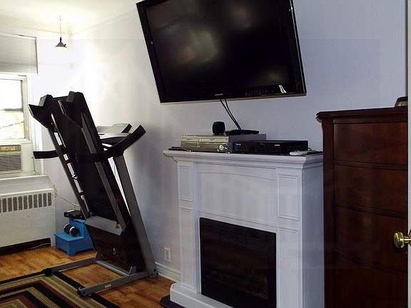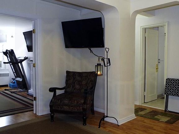 Nicely updated one bedroom corner unit.The apartment is not a ground level unit and gets plenty of sunlight, has hardwood flooring throughout and is situated above the building storage room.Owner is offering the dining and living room flat screens for sale.The bedroom flat screen and both electric fireplace units are excluded.The flat screen tv brackets are included.Owner has a custom built Murphy bed in the living room and prefers to leave it however if you are not interested then he will dismantled and remove it.As of November 10, 2018 there is no waiting list for parking.Parking is assigned after closing by the board of directors.The building is within walking distance to many stores.