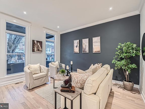 Welcome to Home! Where history and charm meet modern elegance. This beautifully restored 4 bedroom, 3.5 bathroom row home is a true gem in this vibrant community. Situated perfectly between Druid Hill Park and Reservoir Square, this home offers not only a prime location but also over 2100 square feet of finished living space. Step inside and be greeted by the open concept main level, where the combo dining and kitchen area is the heart of the home. Complete with a massive 9-foot quartz waterfall countertop, this kitchen is a chef's dream. The historic charm of the home has been preserved, offering a unique blend of old and new. The second level boasts three generously sized bedrooms, including a primary en suite for your utmost comfort. The third rear bedroom also features a deck, offering an outdoor space to enjoy. As an added bonus, this home features a completely finished basement with a bathroom, creating additional living or entertaining space. The basement also includes a fourth bedroom with egress, perfect for guests or a home office. Additionally you can forget the hassle of finding parking, this home comes with an off-street parking pad. You will Truly Experience the best of both worlds - historic charm and modern updates - in this perfect living space. Schedule your tour today!