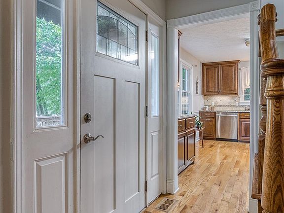 City living feels like a mountain retreat! 1700+ square feet, 4 bedrooms and 2 baths plus an unfinished basement. The updated kitchen with granite countertops, SS appliances, island and dining area with a fireplace will be the one of the favorite gathering spots in this home. The cozy living room walks out the newly replaced sliding doors to the large wrap around deck. The main floor is all connected with beautiful woods floors, a full bath and a bedroom which is currently used as an office. Check out the gorgeous primary suite, the "to die for" walk in closet and the adjacent full bath with newly tiled walk-in shower. Plenty of room for laundry and other hobbies in the basement laundry room and workshop. The basement has been completely waterproofed with a dehumidifier for allergy free living. Only minutes from Mulberry Rec Center, Lenoir Golf Club, Broyhill Walking Park, Caldwell Memorial Hospital and downtown Lenoir.