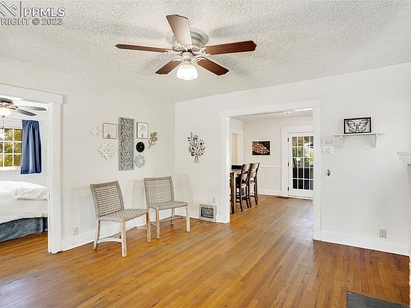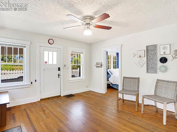 A charming bungalow with unlimited character ideally located in the desirable Cheyenne Canyon area. This is the perfect location for those who love to walk to the new Creekside development for coffee or dinner. Good access to trails with the ability to hop on your bike and go to the nearby trails in N Cheyenne Canyon, Stratton Open Space, and Bear Creek Park. When not playing in the great outdoors, you can enjoy entertaining or relaxing in a nice outdoor living area. The seller added a spectacular 29x18 partially covered (19x18) composite deck with a steel frame, powder coated railing with black post caps and a trellis. This addition has been a game changer for the owners. Now you have an additional 450 sq ft of living space. Love to garden? We have you covered. Want to raise chickens? You’re all set. And, if you really want a house that has been updated for you, look no further! Let’s talk about this gem of a house. Watch the world go by from your covered 6x12 front porch as you sip on your morning coffee. As you enter the home, you are greeted by beautiful hardwood floors that grace the main living areas including the living room with fireplace which connects to dining area with walk-out through French doors to an amazing deck. You’ll love the updated kitchen with farm sink, new cabinets and granite counters. Good-sized bedroom and a updated 3 pc bath. Creative additional room/bonus room with built in bunk bed could be made into an office. Plenty of storage in the basement for your belongings with laundry hook-ups. Lots of off-street parking and usable one car garage. Xeriscaped front yard with mature trees for easy maintenance. The house is nicely set back off the road with lots of off-street parking both in the driveway and the side rocked parking area. Electrical updated in garage with power for a hot tub. Manual sprinkler set up for garden beds. D12 school district and close to downtown for more fun to be had.