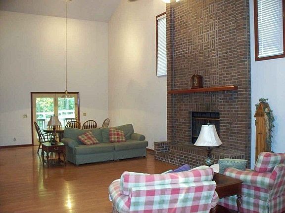 COME SEE THIS "SELL THIS HOUSE" FINALIST HOME...Terry Haas from HGTV personally toured this home and helped prepare it to sell. (New fresh interior paint in the entry, great room/dining area, hallway and stairs). Located on a cul-de-sac, you must see and experience this spacious 3 bedroom, 2 bath home. You are greeted by the spectacular great room with fireplace (gas log), wood laminate floor and a dramatic 22 ft. vaulted ceiling. The open floor plan offers a separate dining area with easy access to the updated kitchen in 2008 with new counters and beautiful new cabinets. The French doors lead out to the large deck (stained on 11/2/11 per seller) and secluded wooded backyard. A spacious master suite offers a very large bedroom and a bathroom with whirlpool tub. Additional space can be enjoyed or used as an office in the loft overlooking the great room/dining area. Per seller: the age of roof is 2 years old.