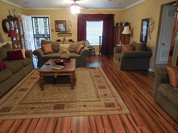 CHARMING HOME WITH BEAUTIFUL LANDSCAPING. NEW HARDWOOD FLOORS GREET YOU AS YOU WALK INTO THIS SPACIOUS FAMILY ROOM AND FLOWS INTO THE DININGROOM AND HALLWAYS. ON THE LEFT SIDE OF THE FAMILY ROOM YOU WILL FIND 3 BEDROOMS AND 2 FULL BATHS. THE MASTER BEDROOM IS COMPLETE WITH 3 SPACIOUS CLOSETS WITH LOTS OF STORAGE SPACE AND ITS' OWN BATHROOM WITH A CUTE VANITY FOR THE MISS OR MRS. NEW DOUBLE PANE WINDOWS THROUGHOUT HOME WERE INSTALLED IN 2009 AS WELL AS THE AC/HEATING UNIT. THIS HOME IS WELL KEPT AND MOVE-IN READY FOR YOUR FAMILY. ENJOY THE PEACEFUL BACK YARD THAT IS FULLY FENCED IN MULTI LEVELS DECKS OFF THE ENCLOSED SCREENED BACK PORCH. SECURITY SYSTEM CAN BE TRANSFERRED TO NEW OWNERSW
