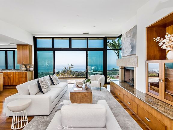 Quintessential Laguna Beach - 75' of lot frontage with unobstructed panoramic views of the city lights, Main Beach, Catalina Island, and the ocean beyond. Sited on an approximately 4,725 square foot lot in the heart of Temple Hills, this three-bedroom estate features contemporary architecture and a functional floor plan spanning about 2,795 square feet. The home's main level comprises a sizable living area designed around the breathtaking views from multiple vantage points. An open floor plan encompasses the property's kitchen with a central island, dining section, and a sitting area with a fireplace. Capitalizing on the Southern California lifestyle, this level also offers access to multiple outdoor spaces, including a spacious glassed-in deck and two patios in the front of the home. A secondary bedroom and a full bath are also located on this floor. The primary suite occupies a large portion of the lower level. Grand in scale, it features a fireplace, two walk-in closets, a five-piece bath, and access to another large deck as well as the home's private backyard. A secondary living area with a wet bar perfect for entertaining and a guest bedroom complete the lower level. Desirable location just minutes away from the city's conveniences, galleries, boutiques, and renowned beaches.