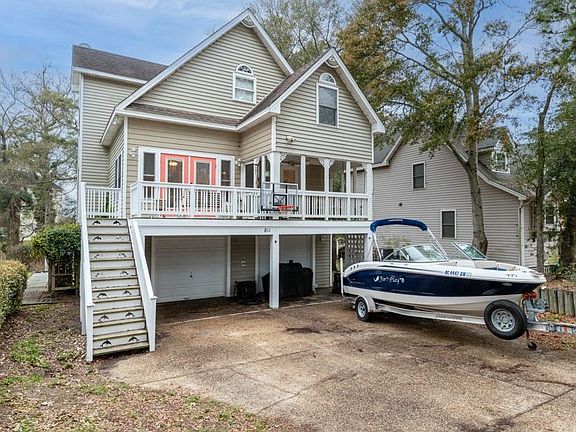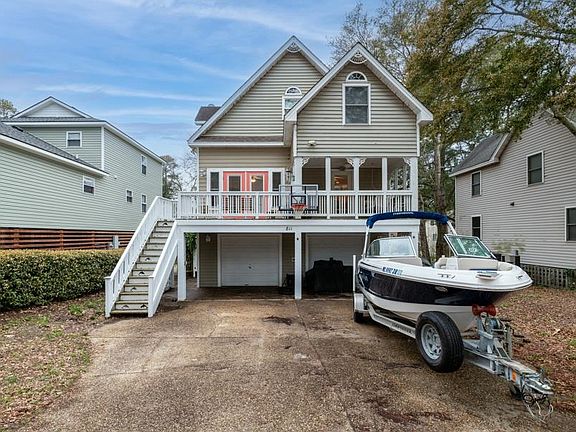 Beautiful three story home in Colington Harbor. This home has been well maintained and is perfect for a large family with a well thought out layout. On the ground level you will find a two car garage with plenty of storage space for the toys and a generator hook up. Through the garage you have a dry entry and a master bedroom with ensuite bathroom, walk-in closet, & linen closet. Just a few steps up there is a landing with the spacious laundry room with new front load washer & dryer. Second Floor (main living area) you will find an open concept living area with gas fireplace, beautiful tile flooring, large kitchen with tile countertops, and a master bedroom with ensuite bathroom, large walk-in closet, &linen closet. There is also a half bath. If you walk up the new hardwood & tile accented stairway you will find two large bedrooms on the third floor. One bedroom as a bonus sitting area or could be used as an office. The second guest room has vaulted ceilings and is also spacious and offers attic storage for all your storage needs. This level also has a guest bathroom with tub/shower. Just a few steps up you will find a bonus space that is perfect for a home office or play area for kids. The hot water heater is located in the garage. Venture outside to a huge backyard that has a storage shed, large wood patio deck and is perfect for entertaining friends & family. There is an outdoor shower on the side. The front deck is spacious with half uncovered and half enclosed for a screened in porch. *Both HVAC units have been replaced since 2022. (the latest in August of 2024)