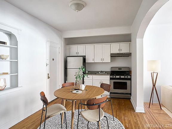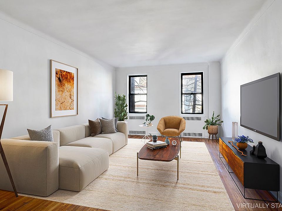 Residence 2D at 811 Cortelyou Road is an oversized, move-in ready prewar home with exceptionally low monthly maintenance in a highly sought after prewar coop perfectly located on the Ditmas Park/Kensington border. Enter the sprawling, 800 square foot home to find an open kitchen & dining area that flows seamlessly into the massive living room. The kitchen features full size stainless steel appliances, white cabinetry with ample storage and new countertops. Built-in shelving frames the room which can also be used as a large dining room. Stepping into the enormous, 20 foot deep living room, you'll find a perfectly symmetrical space easily large enough to accommodate all of your entertaining needs with additional room for a work from home setup should you need one. Two West-facing windows with views out onto the trees provide substantial sunlight while making the space feel even larger than it is. Down the hall lies the sparkling tiled bathroom with full tub and the oversized bedroom with two exposures and three windows facing West and South. This special home additionally features three large closets including a walk-in, hardwood floors throughout, excellent light and exceptional value. 811 Cortelyou Road is conveniently located on the Ditmas Park/Kensington border. The Q and F subways are a quick walk while local shopping and dining options - including the Cortelyou Road Farmer's Market - abound. The building has a quintessential prewar lobby with a Butterfly MX Video Intercom system, storage available for rent, bike storage, laundry, full-time porter, live-in super and elevators.