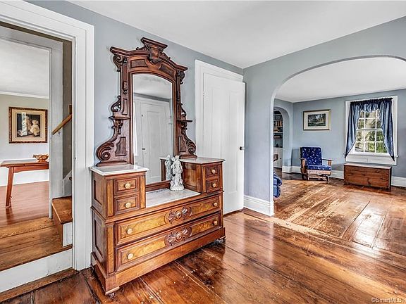 MULTIPLE OFFERS HIGHEST & BEST 6/27 5PM. Rare opportunity for you to bring this Antique Colonial of yesteryear into the future Situated on a perfect level acre in desirable location within walking distance to Daniels Farm Elementary, Hillcrest Middle & Trumbull High schools and minutes to highway, golf course, walking trails, parks, restaurants & shopping. Oodles of charm & character, curved archways, wide plank floors, built-in cubbies are features of this home as well as adequate living space with endless possibilities to accommodate today's lifestyle. Natural light pours in from the wall of windows in the kitchen and convenient to attached 2 car garage. Create additional living space in the walk-up attic. The attached workshop can easily be transformed to an art studio, office, gym or private getaway space. The 1,000 sq ft barn is ideal for car enthusiasts or contractors. Enjoy your morning coffee or evening beverage on the covered side porch or relax on the stone patio taking in the peaceful views. Excellent outdoor space for entertaining with family & friends. This home has been well maintained by the same owner for over 60 years and is move-in ready...don't let the need for exterior paint fool you Built in 1815 for Ephraim Beach of Trumbull. Gas heat, central air, stainless refrigerator and gas range 3 years, roof approximately 10+ years. Plenty of time to get in and enjoy the summer in this historic home. Home being sold as-is.