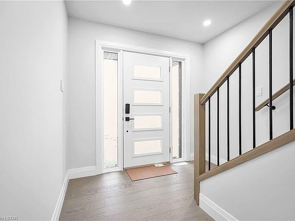 Welcome to The Origin, a masterpiece by Origin Homes, proudly situated in South East London's newest development, Jackson Meadows. This cornerstone model is an embodiment of luxury, showcasing high-end features and thoughtful upgrades throughout. From its impressive exterior with a balcony featuring glass railing and accessible from the primary suite, to the separate entrance leading to a fully finished basement in-law suite complete with a second kitchen and an additional laundry hookup, this home is designed for both elegance and functionality. Boasting a generous 2,600 square feet, The Origin offers 3+1 bedrooms and 3.5 bathrooms. Inside, the home is adorned with luxurious finishes and features that elevate the living experience. High gloss cabinets, quartz countertops and backsplashes, soft-close cabinets, a sleek linear fireplace, pot lighting, and a smart home system with a wall-mounted IPAD control are just a glimpse of the sophistication within. Additional conveniences include a Nest thermostat, black cooktop hood vents, speakers in the family room & primary bedroom, as well as smart home features such as lighting / audio / temperature / door locks etc, and a clever mini pantry door for seamless grocery storage. Positioned on a premium corner lot, this residence is a one-of-a-kind find in Jackson Meadows. The home is completed and move-in ready, inviting you to experience a lifestyle of unparalleled comfort and elegance. Schedule your private viewing today and witness the exceptional craftsmanship and design of The Origin by Origin Homes.