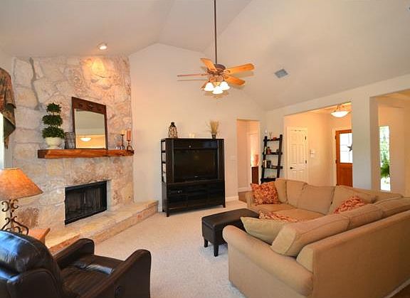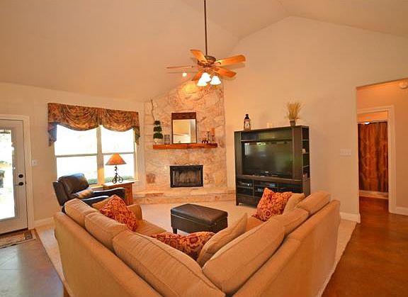Wonderful custom home on 1 ac with long vista views. Even a sneak peek at downtown Austin skyline. Private & quiet. This 3bed/2 full bath features stained concrete flooring, wood burning fireplace, open kitchen, 2 dining rooms, 2 car garage, shady oak trees, fenced in yard, huge master/master bath combo!