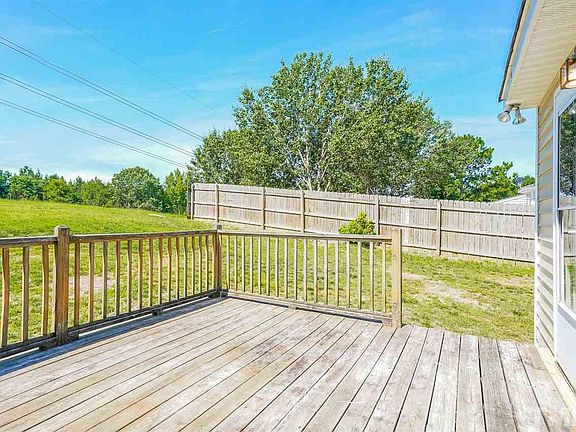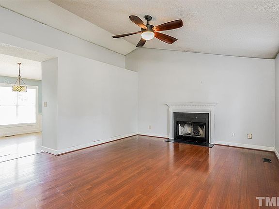 This Raleigh one-story home offers a fireplace, vaulted ceilings, stainless steel appliances, and a uncovered deck.