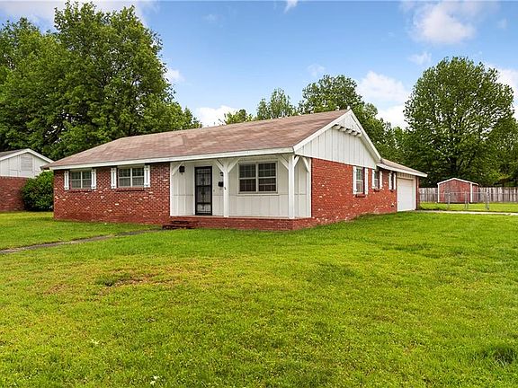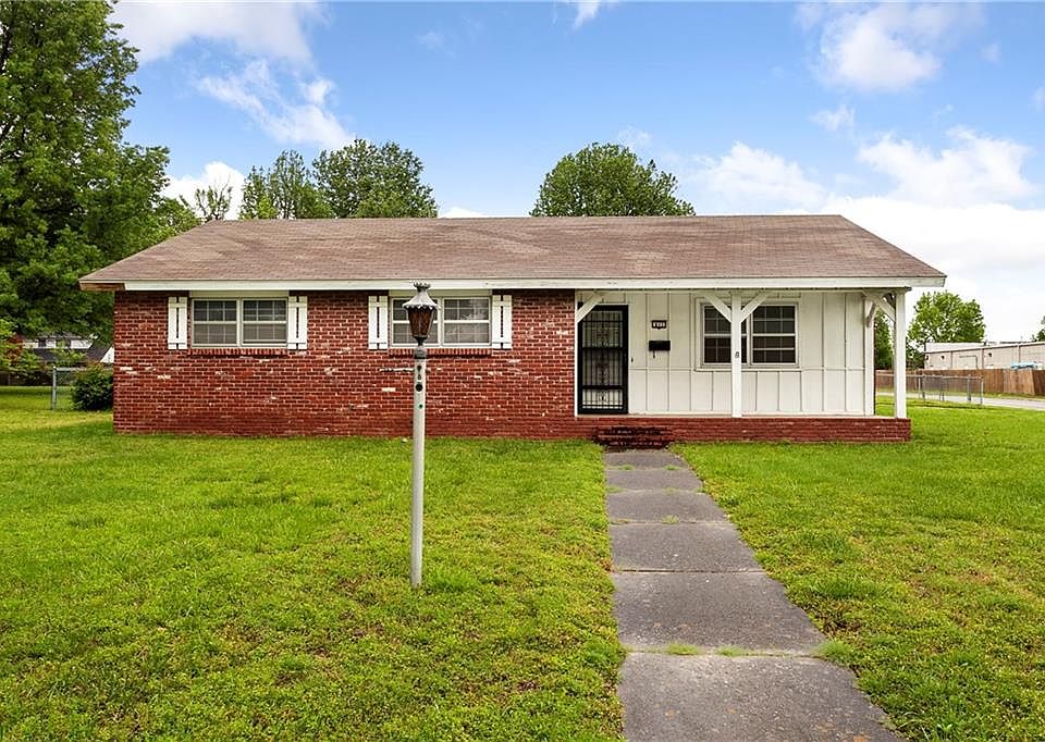 Nearly half an acre corner lot in a great historic neighborhood in Springdale! This 3 bed, 2 bath, 2 car garage boasts an original stone wood burning fireplace, fenced in back yard, and covered front and back porches. Great location close to Sunset (HWY 412) & sits midway between I-49 and 71B. Easy access to walk to many local amenities since commercial zoning is nearby. Own a home in a well established neighborhood. Seller will not make repairs to the home.
