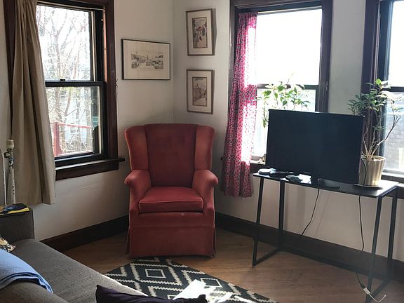Available now, our tenant received an unexpected opportunity and is able to move anytime. 811 E College Street is an easy walk to campus, this beautiful historic building has a one-bedroom apartment with original hard wood floors, charming built ins, and plenty of natural light available now. Off-street parking is available and a coin laundry with 4 washer and dryers is available in the basement. The nicely manicured back yard is a quiet oasis with a garden shed, fire pit, and a vegetable garden cared for by a Master Gardener. Utilities are $125/month and parking is $75/month.