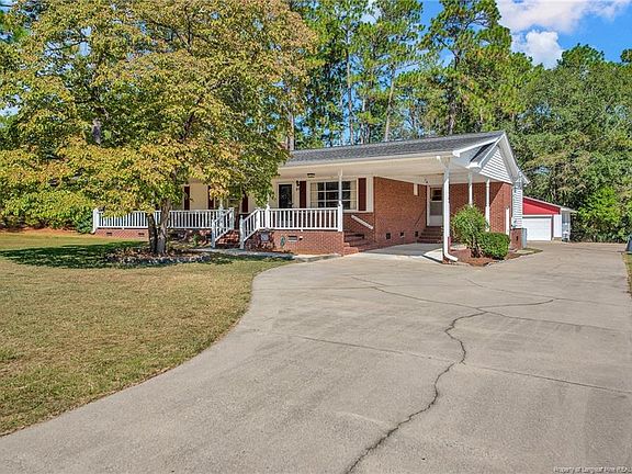 Brick home in a well established neighborhood in Raeford. Large landscaped lot. Perfect front porch for sitting and relaxing. Home has the original hardwood floors in living room and 3 of the bedrooms. One of the smaller bedrooms is actually off of the spacious master bedroom addition and would make a perfect office, nursery or sitting room. Master bedroom addition is massive with 2 large walk in closets and a huge shower. The home is handicap accessible (exterior ramp was removed, but you could easily add another one). Master bedroom has a private exterior entrance also. The house has an enclosed back porch and an attached office that is not included in the square footage - what a great bonus!! This great home has an attached carport for convenience, but the huge surprise is the oversized double detached garage with plenty of space to double as a workshop also in the backyard. There is so much potential and possibilities in this unique property. Please schedule a visit soon!