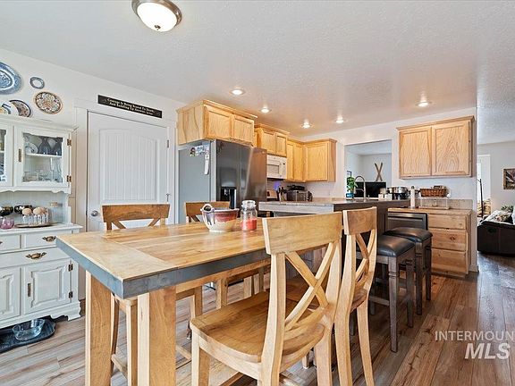 This is the perfect “stick built” home if you are done with mowing and constant yard work. Front and backyard is xeriscape with perfectly planted trees and shrubs, offering color and texture while preserving your free time for fun and relaxation. All this and a lovely gazebo and firepit to enjoy your outdoor sanctuary. Vinyl fence may be the purrrrfect backyard for your kitty kat as they are hard to climb. Location is always important and this home is a short distance to the grocery store, Sonic, gas station and other amenities. Single level with wide hall and a grab bar for that extra peace of mind. Inside and out this home is super comfy and clean. New LVP flooring looks amazing with the beautiful wood cabinetry and stainless appliances. Pop into the walk-in pantry. No HOA. Shed is included. Also included is the Over-Air TV antenna with remote. All in all this home is move-in ready. Built in 2020 with so many upgrades like LVP flooring, TV antenna, Gazebo, landscaping and stainless aplliances.