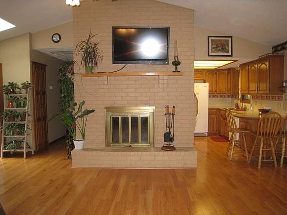 Real wood flooring, 2 Fireplaces, one in the living room and one in the basement. Vaulted ceilings in the open dining/living area. From there walk out to the covered deck for some grill time or just a time out. Basement offers a bedroom, full bath, living area, work shop and garage....man cave at its best. You won't find better outdoor space. Patio, beautifully landscaped, garden spot, 2 utility sheds. Easy access with front and back driveways. This home could be yours!!