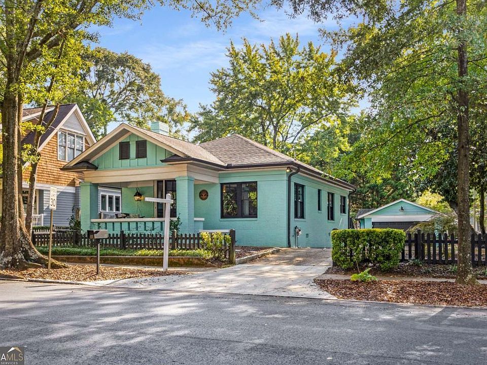 A bungalow with soul, space, and serious style: Live right where the vibrant buzz of Oakhurst Village softens into private stillness in this double lot retreat on the quiet side of East Lake Drive. Renovated to the studs with new plumbing, wiring, insulation, windows and doors in 2012 and upgraded since, this one level home offers five bedrooms, three baths (1 bed/1 bath is in carriage house) and rare-at-this-price-point two car garage and parking pad. The covered front porch captures the neighborhood vibe, setting the stage for morning coffee or a Porchfest band. Inside prepare to be wowed with an architecturally-optimized layout, rich millwork, and spectacular white oak floors that have been freshly refinished. The front living room, framed by curated bookshelves (they stay!) and decorative fireplace is designed with versatility in mind - welcoming parlor, storybook library, or cocktail lounge. It adjoins a dining room trimmed in wainscoting where gatherings linger long after dessert. The kitchen is literally the centerpiece, featuring vaulted ceilings, cool-toned cabinetry, a stylish island, gas range, built-in refrigerator, and newer Miele dishwasher. It opens seamlessly to the oversized family room, where a gas fireplace, custom shelving, and a wall of windows lead to the generous back porch. Your own corner of calm, the owner's suite is tucked away down a private hallway. Inside find natural light in every direction, expansive walk-in closet, and en-suite bath flanked by custom doors and soaring ceilings, and illuminated with a transom window. The three additional bedrooms are perfectly positioned to optimize flow and privacy. With a sun-kissed patio, the home's tree-lined, fenced backyard and massive flat side yard offer endless outdoor and ADU expansion possibilities (owners have permit-ready drawings available). The garage includes a private guest suite with new mini-split system and bathroom -ideal for in-laws, an au pair, or home office. Enjoy modern comfort with a top-of-the-line Carrier HVAC system (9 years remaining service agreement and warranty) and tankless water heater. All this and just moments from the restaurants, coffee spots, and parks of Oakhurst and easy