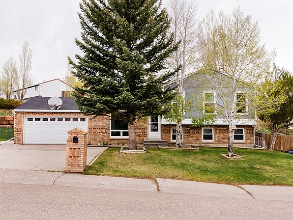 Well cared for and updated spacious tri-level in the fantastic Ridgeview Subdivision! Love the brick front, great trees, plenty of extra parking, 2 car garage with lots of storage and lighting. Awesome fenced back yard, deck, patio, terracing for garden spots, storage shed, sprinkler system. Large open living space with main level living room with a toasty stove and lower level family room with a wood stove insert that will save you money on heating. Accent brick wall in the eat in kitchen with large slider leading to the enjoyable backyard, spacious master with walk in closet. All this enjoyed with central air! This one is move in ready!