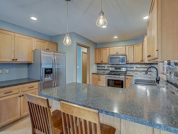 Located in a quiet North Hudson neighborhood, this inviting 3 bed, 2 bath home offers a warm and comfortable feel with a functional layout designed for everyday living. The main level features a cozy living room highlighted by a rustic accent wall, while the spacious kitchen includes stainless steel appliances, wood cabinetry, and a seamless connection to the dining area, perfect for casual meals and gatherings. The finished lower level offers an additional living and entertaining space, featuring a warm fireplace and an abundance of natural light. Step outside to enjoy the walkout deck overlooking an expansive, fully fenced backyard with mature trees and a firepit. Recent updates, including a new furnace, AC, water softener, and roof, provide added peace of mind, while the attached 2-car garage with a workbench and storage adds everyday convenience. Situated on a quiet cul-de-sac, you’ll love the convenient location just moments from the St. Croix River, Sommers Landing Park with newly added pickleball courts, and a short drive to Downtown Hudson and Stillwater. Don’t wait on the incredible opportunity to call 811 Fox Tree Lane home!