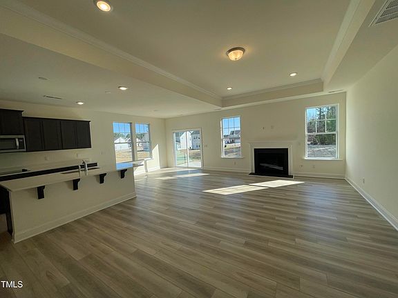Move-In READY! This first floor Primary bedroom plan with 4 bedrooms, 3.5 bathrooms and large bonus room features a formal dining room, gourmet kitchen with quartz countertops, fireplace, tile shower, and rear extension.