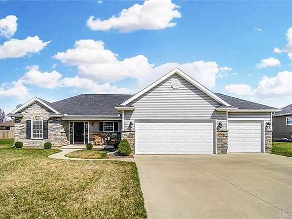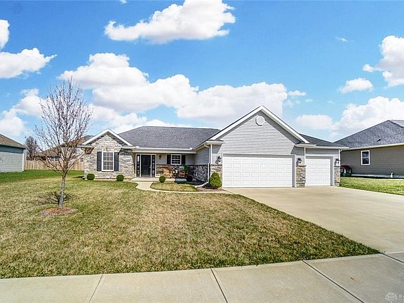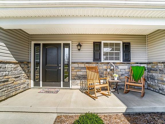 Welcome home! You'll love this beautiful Nottingham ranch with a great open floor plan and tons of space! When you pull up, you'll immediately notice the great curb appeal and THREE car garage! The front porch is perfect for sipping coffee and chatting with the neighbors! Inside the large entry, you'll love the space of the open floor plan and cathedral ceiling in the great room. The great room features a gas fp! The house has a combination of laminate, neutral carpet, and tile. The eat in kitchen has a small island and roomy pantry, soft shut cabinets, and all kitchen appliances convey! The master bedroom is huge, and the master bath has a double vanity, HUGE tiled shower, and walk in closet. There is a back patio just outside the patio door from the kitchen and a large, fully fenced back yard. Roof, furnace, AC, water heater all 2014. Radon mitigation system in place!
