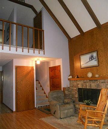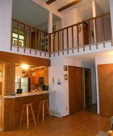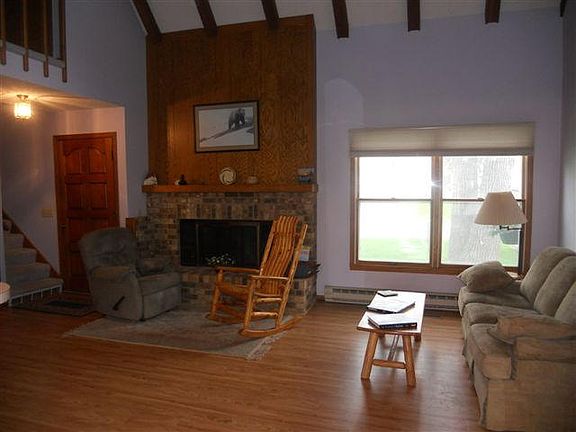 Check out all the unique features of this property! This home is located on two city lots (could be subdivided)for a total of 1.25 acres along the river! Amazing treed backyard that is partially fenced and has the feel of country!Great neighborhood! Updated home has vaulted wood beamed ceiling with an open loft area,brick fplc,patio door to backyard deck,family room in bsmt & heated garage!