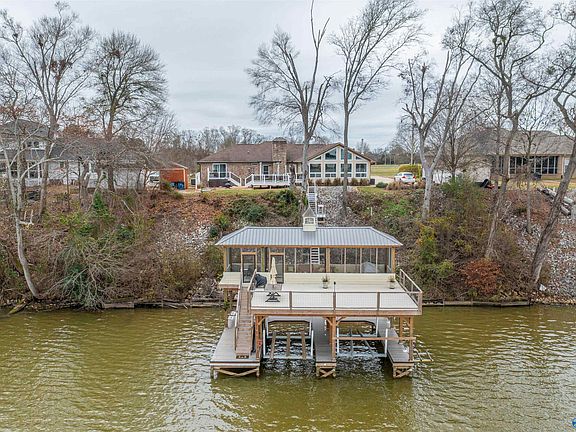 RIDDLES BEND- WATERFRONT- BIG WATER- VIEWS- 2 STORY BOATHOUSE- HOME OFFICE- Beautifully renovated 4BDRM/2.5BTH family home nestled on 1.3 acres +/- overlooking the BIG WATER of the Coosa River! Awesome family room w/ ample natural light, soaring ceiling, exposed beams, a loft & killer water views! Kitchen w/ new cabinets, granite & tile backsplash! Dining w/ fplc. True master suite w/ HIS & HER vanity bowls & custom tile shower. Composite deck, patio & hot tub leading to a new 2 story main channel boathouse w/ 2 boat lifts, jet ski lifts & screen porch! Open deck off screen porch perfect for watching the children/guests enjoy all the water sports. Don't miss these big water & mountain views!
