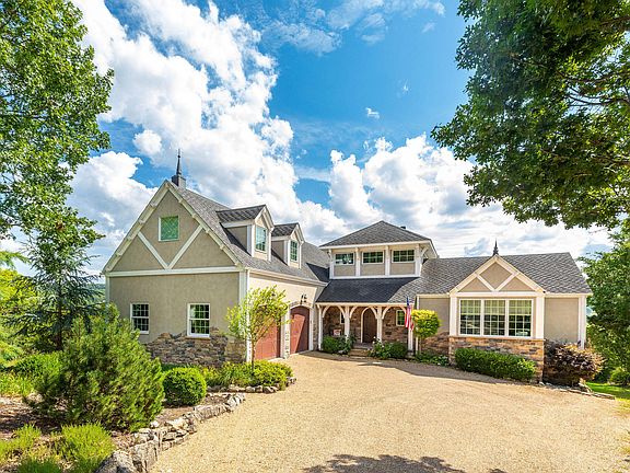 Custom English Style Lakefront Estate on Table Rock Lake! This stunning estate, architecturally designed after the historic Worman House, combines classic elements along with a picturesque waterfront setting. As soon as you walk in, you will be welcomed by walls of windows showcasing the panoramic pristine lake views! Featuring 5 bedrooms, 3 1/2 baths, hand scraped hardwood floors, soaring 24' ceilings, white-washed beams, rock fireplace, Chef's kitchen with granite counters, unique tile backsplash from Rome, maple cabinets with pull-outs & soft close drawers, master suite with separate toilet rooms, his & her closets, sunny window lined office, loft sitting room with exceptional views, lower walk-out basement to flagstone patio & fireplace area, lakeside pathway to campfire & directly to the water, 50 year grade architectural shingles, pea gravel English style drive, 2 car garage with workshop, sink & epoxy treated floor, composite decking perfect for entertaining & so much more! Situated on 3 lots, this is a wildllife paradise with natural landscaping for easy maintenance! This is a once in a lifetime opportunity you need to see to believe! Most furnishings (some exceptions) will convey! Located one mile from Big Cedar and easy Hwy 65 access! Community boat ramp a mile away! Hurry! This will not last!!