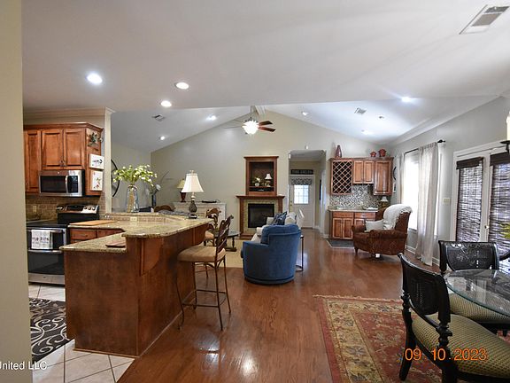 Beautifully appointed and decorated patio home in North Greenwood, close to shopping and featuring an open floor plan perfect for entertaining, a gorgeous kitchen with granite countertops, beautiful cabinetry, den with a vaulted ceiling, gas log fireplace, and wet bar area with ice maker, enhanced by decorative tile backdrops, and a dining area opening to a private side porch through French doors. Front entry opens to a formal living room which could also make a great office or could easily be converted to 3rd bedroom. The luxurious primary bedroom with a 10' tray ceiling has a private bath with a jetted tub and large walking shower and private entry to side porch and courtyard. Hardwood and ceramic tile floors, tall ceilings, crown molding, updated kitchen sink and hardware, utility room with utility sink all make this a perfect modern home for downsizing. If you're looking for move-in-ready this is it!