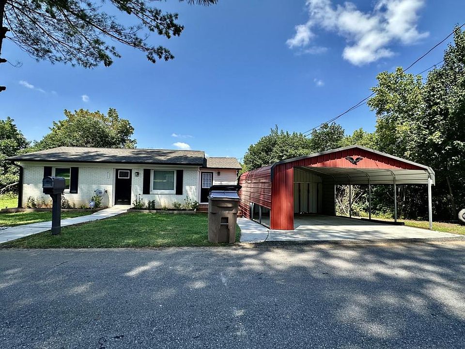 Completely remodeled 2 bedroom, one full bath Ranch with all new kitchen cabinets, granite countertops and stainless steel appliances with a refrigerator and microwave. The kitchen has a dining area and the living room has a beautiful electric fireplace. There is a 2 car metal carport and a shed for additional storage. The home has a large fenced in yard with a an area to garden. The home is close to downtown Shelby.