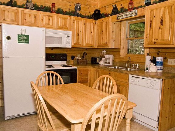 AS CUTE AS A BUTTON, THIS BEAR THEMED CABIN IS WAITING FOR YOU, SLEEPS FOUR, PRIVATE MASTER BEDROOM AND LOFT. FULL KITCHEN. ENJOY THE GAS LOG FIREPLACE ON COOL AUTUMN OR WINTER DAYS. ENJOY YOUR TIME OUTSIDE IN THE HOT TUB OR READ A BOOK ON THE SWING ON THE FRONT PORCH. WITHIN MINUTES FROM THE ENTERTAINMENT OF PIGEON FORGE, SHOPPING IN SEVIERVILLE, NOSTALGIC AREAS OF GATLINBURG AND OF COURSE THE GREAT SMOKY MOUNTAIN NATIONAL PARK.
