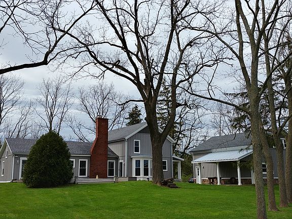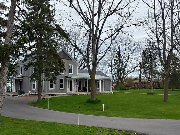 Lake Ontario waterfront; with unobstructed views of Lake Ontario, this 3-4 bedroom, 2 full bath home has over 2200 sq. ft. of living space. Family room, parlour, woodburning fireplace, formal dining room, library/office, first floor master bedroom and laundry. French doors from the master bedroom lead onto an outdoor deck. Perfect place to enjoy your morning coffee. Original hard pine floors in most rooms. All floors refinished, new electical, new furnace, roofs, air conditioning, insulation, windows, doors, kitchen and bathrooms in 2014. Detached, 2 car garage with full attic built in 2014. Natural gas at the street; city water and sewer. Surrounded with mature trees. Views of freighters to the north, horse pasture to the south. Welcome home.
