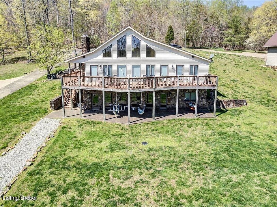 Just what you've been waiting for! A lakefront home in sought after gated Lochober. This 1.5 story home has an open floor plan with the great room, dining area and kitchen one large room with tons of windows for lots of natural light and views of the lake. There is' also access to the expansive rear deck from this area. The great room has a real wood burning creekstone faced fireplace. The kitchen features granite counter tops, center island with barstool area, smooth top range, tiled backsplash and desk area. Adjacent to this area is the primary suite with a pampering bath with whirlpool tub, separate shower, double bowl sinks and walk in closet. There is access to the rear deck from this area as well--perfect for enjoying starlit skies. There are two additional bedrooms, plus a fullbath on this level. Upstairs is a multi-functional loft area with storage. The finished lower level has a family room with a second creekstone fireplace, wet bar, recreation/game area, fourth bedroom, laundry, full bath, plus another room utilized as 5th bedroom (no window). There is access to the rear patio which is shaded by the upper deck. Just grab your favorite beverage and enjoy the views. The rear yard features an eclectic collection of items, firepit and storage shed. The boat dock is just behind the home. By water, the home is located on Conoloway between Ponderosa and Moutardier. Enjoy memories to last a lifetime at your own lake home! Furnishings are negotiable. No short term rentals allowed.