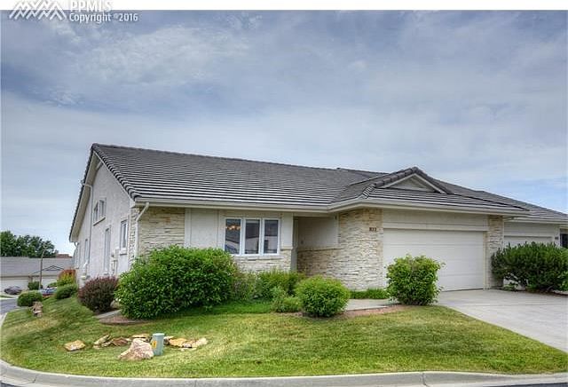 Main level living with awesome views right out your kitchen window! Vaulted ceiling, skylights and lots of windows enhance the open, bright and carefree ambiance of this beautiful stone and stucco patio home. The kitchen has an eat-in dining area and stainless steel appliances. With hardwood flooring, lots of counter top space, tile backsplash, and beautiful cabinetry, it would be any cooks delight.