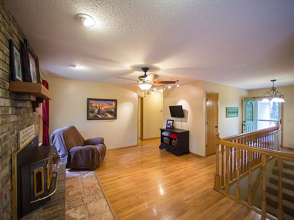 Walkout basement home in secluded wooded setting. Main level has 3 bedrooms, 2 baths, fire place w/mantle & wood burning stove in living room. Kitchen has updated cabinets, back splash & corian counters. Deck overlooking the back yard/woods. Basement offers a second living area, bath, wet bar and plenty of storage. Other updates: New carpet, trim & doors in basement, water heater (1.5 yrs old), air to air heat pump, extra insulation in attic. All on 5 acres -- come and take a look!