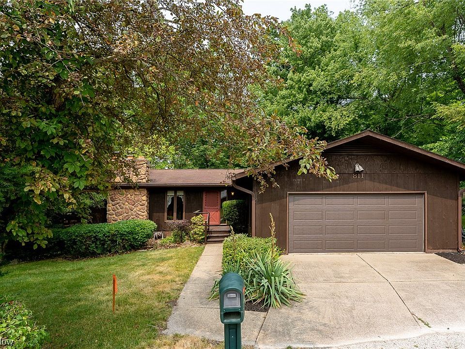 Welcome home to this one-of-a-kind 3 bedroom/2 bathroom ranch on over a half an acre of trees and privacy in North Canton school district! Walk through the front door into the oversized foyer with ceramic tile floor and extra large coat closet. The foyer opens directly into the great room and dining room areas. Great room is cozy with updated LVP flooring and fireplace with beautiful stone surround. Updated LVP flooring continues into the dining area with the first of two balconies through sliding glass doors. The kitchen boasts beautiful cherry cabinets, ceramic tile floor, walk-in pantry. The dinette area in the kitchen leads to the second balcony that is large and perfect for grilling and entertaining. First floor laundry is right off the garage and perfect for all of your mudroom and storage needs. Primary bedroom has an en suite with garden jetted tub and 7x8 walk-in closet. Two additional bedrooms and full bathroom with shower/tub combo finish off the main level. Head