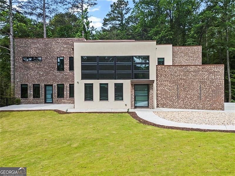 Built in 2023, this modern masterpiece sits on a 1.3 acre lot. The architectural brilliance of this home seamlessly integrates living spaces with thoughtfully designed luxury features. Upon entering the home, you will immediately feel the grandeur of floating staircase and the 20-foot ceilings, accentuated by floor-to-ceiling windows with abundant natural light and stunning views. The chef's kitchen is complete with custom cabinetry, a quartz waterfall island, double ovens, 6 burner gas range, 48" cabinet depth refrigerator and a wine cooler. Surrounded by windows, the dining room opens onto a patio allowing your guests to flow outside for alfresco dining. A private staircase leads to the oversized primary suite, featuring a deck with treetop views. The primary suite bathroom boasts an enormous walk-in shower, a free-standing soaking tub, double vanities and a water closet. Additionally, this suite includes a sunny flex space ideal for an office or library. All secondary bedrooms are gracious in size and 4 have ensuite bathrooms and walk-in closets. Entertainment awaits on the terrace level in the home theater, equipped with a 300" screen, soundproofing, built-in audio and a stylish bar for hosting guests in style. Three levels of decking provide an abundance of outdoor living space. A screened-in porch with a linear fireplace off the main level offers year-round enjoyment. The secluded, level backyard bordered by trees can easily accommodate a pool. Designed for contemporary living, this smart home boasts 3 EV charging stations, built-in Wi-Fi hotspots, whole-house speaker system, USB chargers, water filtration system, tankless hot water heater and Nest thermostats, features ensuring comfort, convenience, and connectivity at your fingertips.