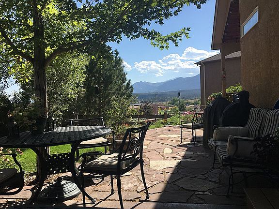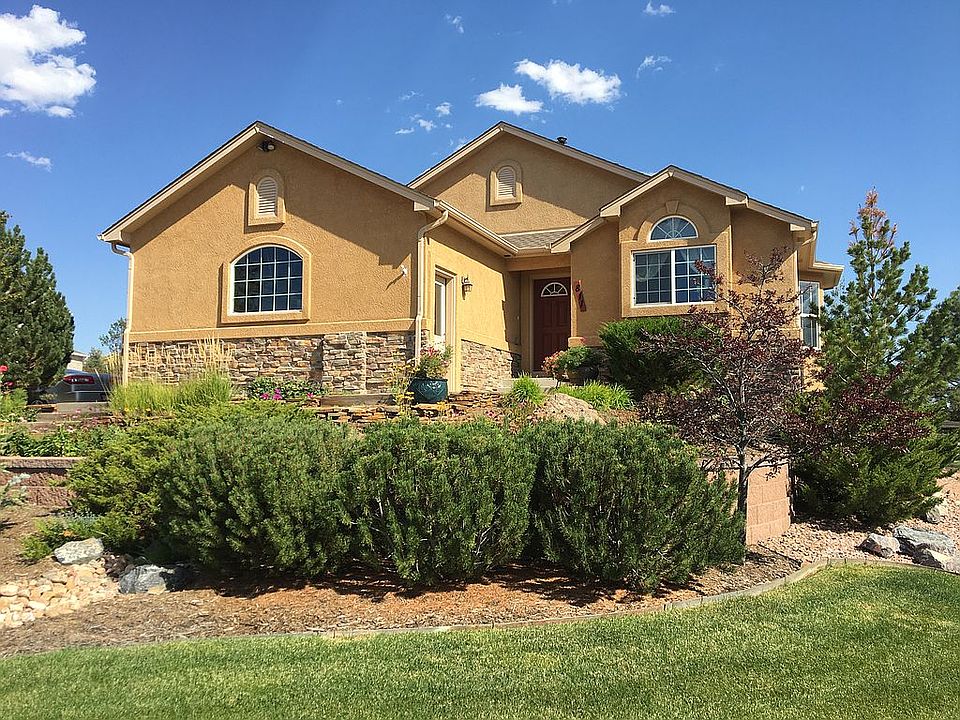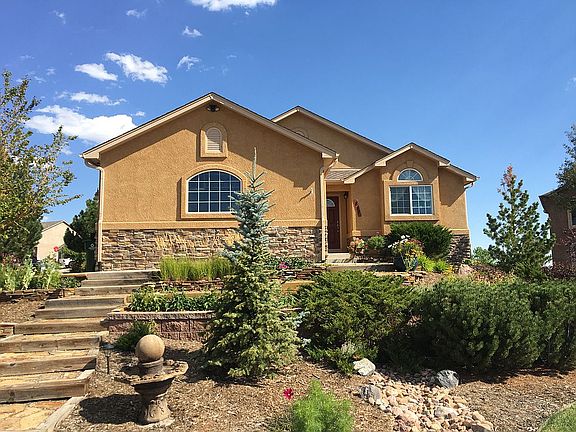 When just a house isn't enough, Welcome Home! This elegant ranch is the pinnacle of main level living in the highly sought after Jackson Creek neighborhood! Hardwood floors on the main level with a bright, flowing, open floor plan, natural light, phenomenal mountain views, and amazing sunsets. The spacious kitchen boasts striking granite countertops, brand new stainless appliances, and tile backsplash. Looking for a quiet workspace? Head to the office (could also be a 6th bedroom) with adjoining bath and tranquil atmosphere. Time to unwind? Nestle quietly into the private master with a Luxurious 5-pc bath, TWO large walk-in closets, and private cobblestone patio perfect for reading or relaxing. Entertainment? Your new home has 3 entertaining areas! The Great room off kitchen, Backyard with private patio and mountain sunset views, and the Finished Basement has huge rec room perfect for movie night, sports, game room, or just getting away. Four more nice sized bedrooms (one with walk-in closet), full bath, and upper and lower level laundry rooms create a 2nd living space for inlaws, outlaws, teens, or guests. (The lower level laundry room could easily be converted into a wet bar.) The Gorgeous yard has lovely, private landscaped backyard with mountain and Academy views, while the beautiful terraced front makes your home feel like a castle on a hill! The large 3-car garage gives plenty of space for your vehicles and toys :-) Walking distance to the park, and close to US Air Force Academy, I-25, shopping and restaurants. This home has it all! Welcome home...