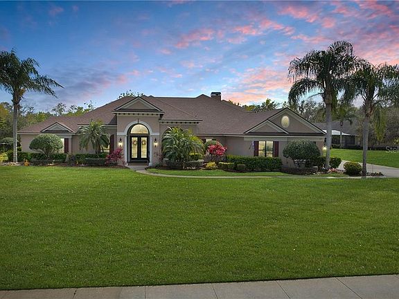 Situated in the highly sought-after gated community of ESTATES ON LAKE MILLS, this impeccably maintained 5 bed/4.5 bath custom POOL home sits on a beautifully manicured 1+ acre lot backing up to conservation. As you enter this elegant residence, you are immediately greeted by the beautiful foyer as well as the office/den located to your immediate left. It offers ample space for two workstations. The formal living and dining room areas boast 12/14" high ceilings, crown molding, and abundant natural light. Coming further into the home, you're greeted by the family room/kitchen combo which is unquestionably the heartbeat of the home. The family room is the epitome of luxury, spaciousness, and most importantly perfectly laid out to entertain with a wood-burning fireplace. The dining room and kitchen share an amazing pass-through space where you can be in the kitchen and enjoy what's going on in the dining room and vice versa. If that wasn't enough, the family room offers retractable sliding doors that allow you to connect to the outdoor space, again perfect for entertaining. The crown jewel of this home is the CHEF'S KITCHEN which boasts an OVERSIZED GRANITE CENTER ISLAND, Custom Cabinets with crown molding, Stainless Steel appliances, 6-burner gas stove, double ovens, large walk-in pantry, mud room feature and a well-appointed breakfast nook that overlooks the pool. The main floor Master Suite is truly an owner's retreat with its sitting area, his and hers CALIFORNIA CLOSETS, and direct access to the pool. The Master En-Suite bathroom features dual vanities, jacuzzi garden tub, and walk-in shower. This home's split-floor plan also offers an IN-LAW/GUEST SUITE located just off the family room which also has its own dedicated full bathroom, PRIVATE ENTRANCE, as well as providing direct access to the pool. Finally, two bedrooms separated by a JACK-AND-JILL BATHROOM lead you to the stairway to the second floor. There you will find one additional bedroom, a full bathroom and a large BONUS ROOM that overlooks the tranquil backyard. This oversized bonus room can be used as a game room, theater, man cave or a combination of all three. This home offers tons of storage space and includes a whole home CENTRAL VACUUM SYSTEM for convenience. As you make your way outside onto the FULLY-SCREENED LANAI and pool area, you're immediately blown away by the elegant custom pool. In addition to the amazing pool, you will enjoy the separate hot tub and covered seating area that offers an abundance of deck space to entertain guests or relax while waiting for the barbeque to finish cooking in your outdoor SUMMER KITCHEN. To further compliment you will also find an ENCLOSED OUTDOOR SHOWER. As an added outdoor bonus, this more than 1+ ACRE LOT offers plenty of room in the backyard for family activities. In addition to the amazing features of this home, the Estates on Lake Mills community offers GATED ACCESS along with a playground, tennis court & basketball court. If you're looking for a home for your family that has all the upgrades you could ask for while also giving you peace, tranquility, community amenities and access to all the dining and entertainment you could ever need then look no further because you're home.