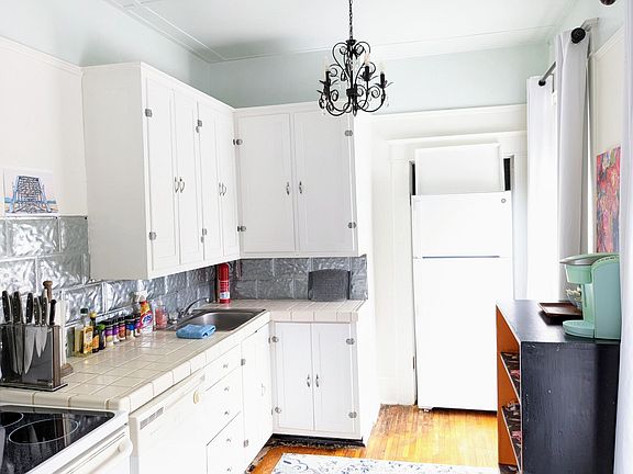 Kitchen has refrigerator, stove, dishwasherand microwave. The living room in this apartment is very spacious and has beautiful windows that look out onto the street on Mississippi avenue.