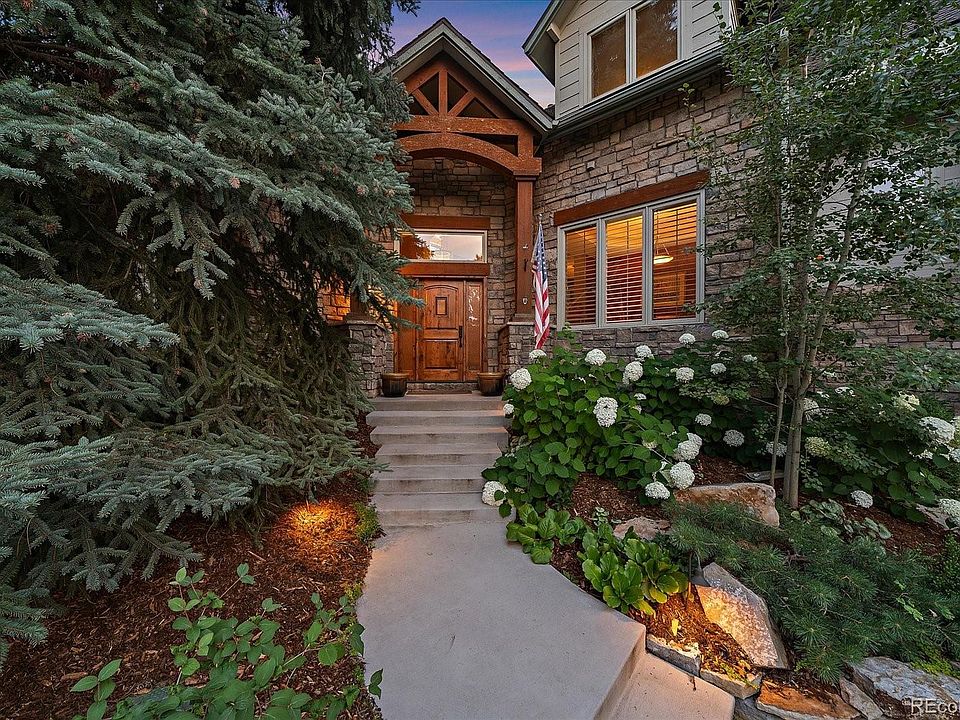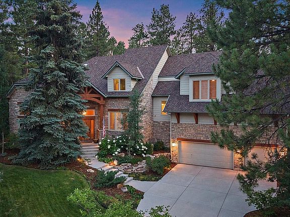 Tucked at the end of a quiet cul-de-sac on a large lot and surrounded by mature pine trees, this charming 4 bed/4.5 bath home offers exceptional curb appeal and ultimate privacy. Step into the grand foyer and discover a thoughtful floor plan featuring a main floor office with custom built-ins, a formal living and dining room, and a vaulted family room anchored by a striking stone gas fireplace. The heart of the home is the professionally remodeled kitchen—boasting over $200,000 in upgrades—including slab granite countertops, custom cabinetry, built-in refrigerator, six-burner gas range, wine fridge, and travertine flooring. The sunlit breakfast room, a beautiful addition by the owners, flows effortlessly onto a private patio for seamless indoor-outdoor living. Step outside into your private backyard oasis, where over $250,000 in professional landscaping has created a true outdoor retreat. Host with ease on the expansive patio complete with a built-in outdoor kitchen, Fire Magic gas grill ($20k), custom built fire pit, serene water feature, multiple lounge areas, and a private hot tub—ideal for entertaining or relaxing under the stars. Upstairs, you’ll find four spacious bedrooms, three bathrooms, and a versatile bonus room with abundant storage. The primary suite is a true retreat, featuring a five-piece bath and plenty of space to unwind. The fully finished basement provides even more room for entertaining and includes a large storage area and workshop. Don't forget to check out the oversized 3 car garage with lofted storage and tons of cabinets. Newer HVAC! As a resident of the gated Castle Pines Village, you'll enjoy access to top-tier amenities: multiple swimming pools, tennis, pickleball and volleyball courts, playgrounds, a fitness center, and miles of scenic hiking trails. Home to two Jack Nicklaus-designed golf courses and the prestigious Country Club at Castle Pines, this is more than a home—it’s a lifestyle.