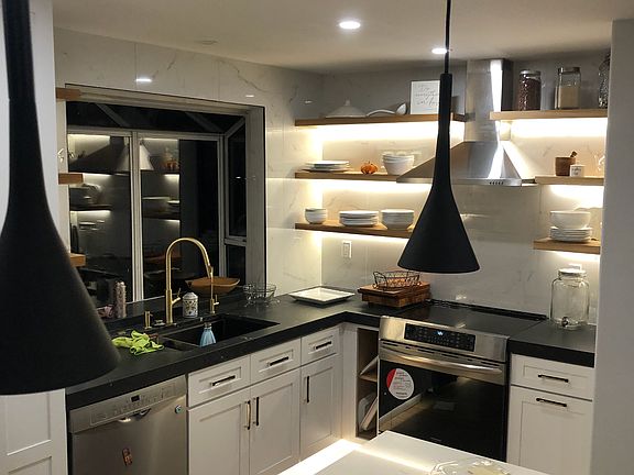 The home features a bright open floor plan, newly remodeled kitchen and bathrooms, fresh paint, updated flooring, and stylish finishes throughout. The main level includes a full bedroom and bathroom, ideal for guests or multi-generational living.