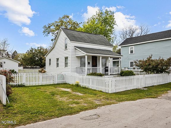 This one-of-a-kind 1 bedroom / 1 bath cottage is nestled in the heart of New Bern and is surrounded by many historical landmarks to explore. This property is also within walking distance of the greater downtown area for local boutiques and eateries, riverfront attractions, parks, and a picturesque riverfront. The cottage is updated and equipped with modern conveniences while maintaining ''cool'' character and charm. Some features include an open living, kitchen, dining area, large bathroom, laundry room, wide plank heart pine flooring, recessed lighting, beadboard accents, and built-ins. The bedroom is located on the second-floor level and offers some river views. The entire perimeter features a wood picket fence, off-street parking, and an 8ft x14ft storage building. The Union Train Station Depot refurbishment project and the famous Cedar Grove Cemetery are just steps away. This low-maintenance property is ideal for your private getaways or to utilize the short-term or vacation rental potential. Enjoy the convenience, charm, and historic culture downtown New Bern offers. This rare and unique property encompasses excellent appeal! Call today for a private showing!