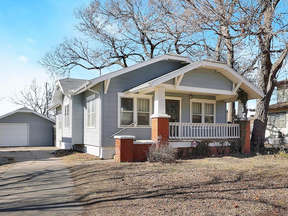 Beautiful home located in the highly sought after Historic Riverside neighborhood that comes with desirable curb appeal. All of the siding was replaced back in 2004 and still in really great condition. Home has a detached oversized one car garage that has also been resided. Backyard has alley access and has two separate fenced in areas perfect for gardening and/or pets. Home has a great front porch perfect for morning coffee. Inside has original hardwood floors and original woodwork throughout the home adding tons of charm. The front has a good sized living room with a lot of windows allowing for a lot of natural light. Next comes a large formal dining room right off of the kitchen that has another a separate eating nook. There are two large bedrooms on the main floor with the bath. Kitchen has a lot of built ins and cabinets for storage. Basement has high ceilings and could easily be finished out for more living space. Half of the full basement just needs sheetrock and flooring and would include another approx 500 sqft of living space. Laundry is in the basement, but could be moved upstairs if needed. Home is being sold "as-is, where-is." New water shut off installed 2020.