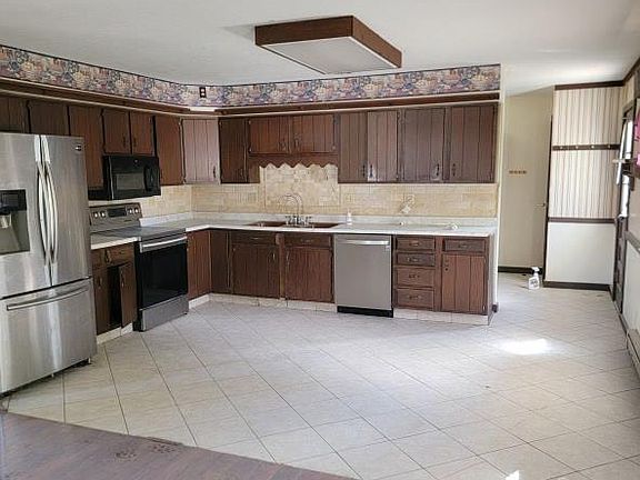 3-bedroom, 2-bath brick home boasts more space than meets the eye and is brimming with potential! The unfinished basement, With solar panels installed on both the front and back of the roof, this home is stylish and energy- efficient. an oversized 2-car garage and large second garage. Hold Harmless Required for showings