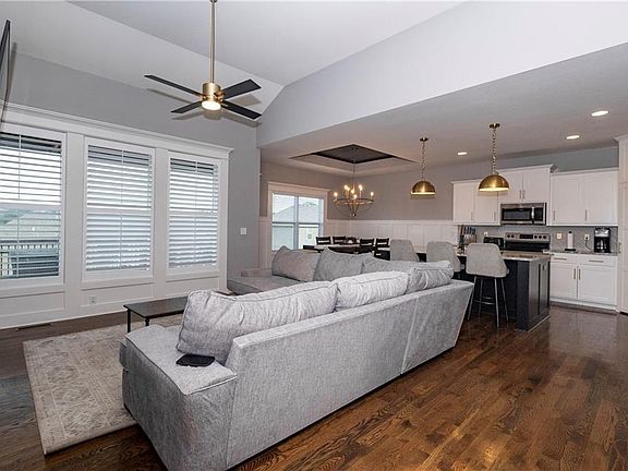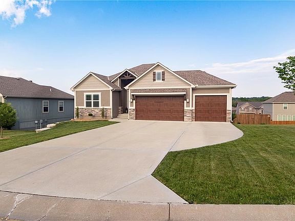 Fall in love with this "better than new" highly sought after Reverse 1.5-story home in a cul-de-sac with a country feel. This impressive home is located in a quiet community only minutes from Lee's Summit. This newer one-owner home shows like a model. It features 4 bedrooms and 3 full bathrooms. The spacious master suite boasts a separate custom tile shower and a whirlpool tub complimented by double vanities with stackers and a walk-in closet. The 2nd bedroom has its own private bathroom, or use as a great office! A spacious family room with fireplace and an open, inviting remolded kitchen with an island for gatherings and a passthrough walk-in pantry. Enjoy morning coffee on the covered deck. So many recent upgrades, including interior paint, plantation shutters, and added board and batten in the dining area, bathroom, and staircase wall. Many new light fixtures, hardware, and ceiling fans too. The walk-out lower level is a stunner. Newly added Luxury Vinyl Tile for beauty and easy care. Two additional bedrooms for family or guests and a safe room. Lot's of room to expand in this home if one needs a 5th bedroom, workshop, theater room, or it makes a great exercise room. Walking out to the patio overlooking the fenced yard, which is wonderful for gatherings or your pets. The sellers have created a gardners delight with 2 new raised gardens/flower beds. Come see this beauty today; you won't be disappointed.