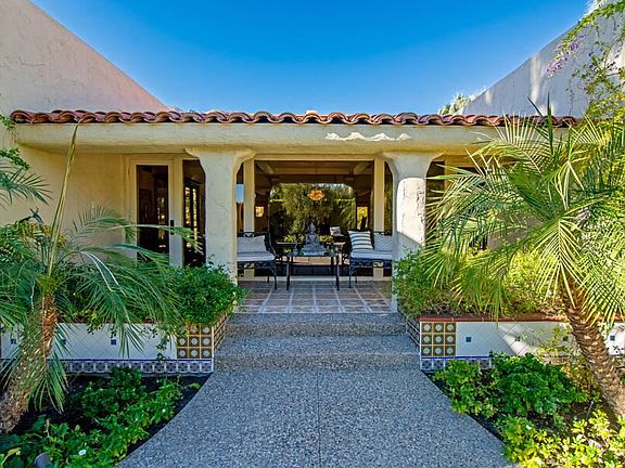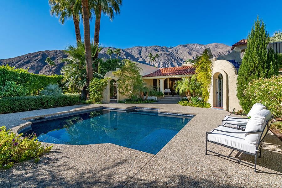 Welcome to Casa Encanto, a magical Spanish style Cottage located in the heart of Old Las Palmas. First time being offered since 1985, this home is charming in every way; delivering a warm comfortable casual elegance. A home away from home, or an excellent opportunity to scale down and remain in this exclusive neighborhood. The 3 bedroom, 3.5 bath home is approximately 2600 sq. ft., walled and gated, lushly landscaped, and situated on a corner lot. Built in 1942, the uniquely historic property has been lovingly upgraded by the current owner, who carefully chose timeless furnishings to enhance its relaxing atmosphere. Upon stepping through the artisan double doors, you become immersed in the comfort of the warm and inviting interiors. Wood beamed and original concrete tile with decorative inlay floors add to the ambience. Enjoy breathtaking views from all rooms of the San Jacinto mountains or the gardens surrounding the property. The main Living Room opens out onto a beautiful back patio with pristine mountain views to the west. Formal Dining room has direct access to the front yard overlooking the mosaic tiled pool and pristine gardens. Enjoy preparing meals in a kitchen with vintage detail & upgraded appliances. Primary Bedroom features stunning views, large walk-in closet & open bath with serene spa tub. Property has been impeccably maintained; Kitchen & Primary Suite ready to be taken to next level. Don't miss a rare opportunity to own this exceptionally enchanting home.