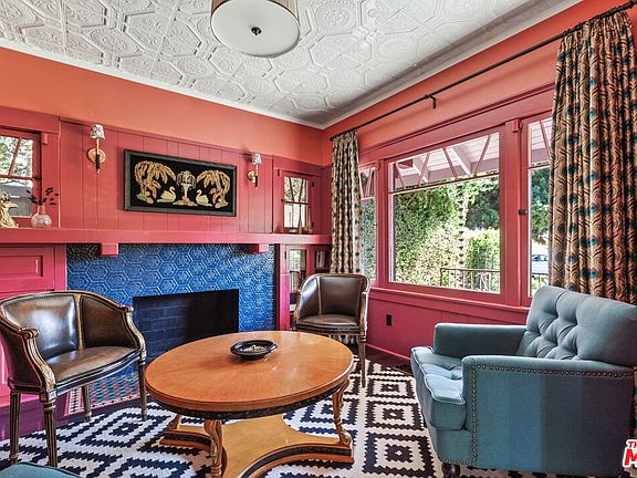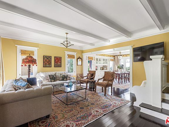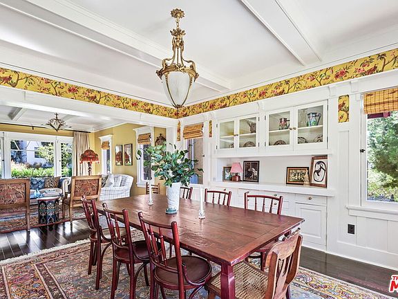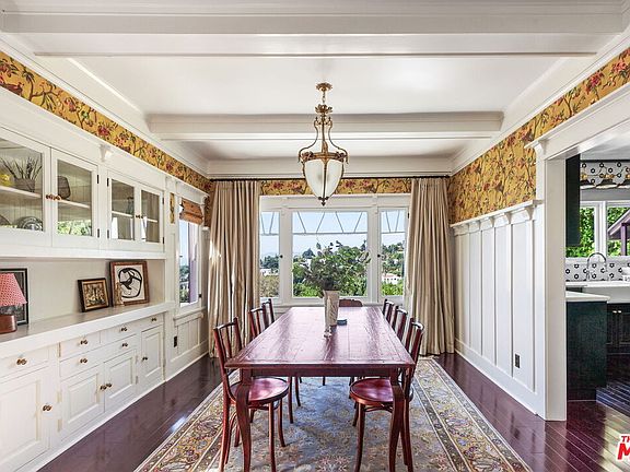 Gorgeous 1909 Craftsman which has been meticulously restored in the heart of Silver Lake. Beyond the hedges and relaxing front porch, enter through the original front door to an open floor plan with magnificent views, elegance, natural light, character built-ins, beamed ceilings and privacy. Pocket doors unveil a spacious sitting room complete with tin ceiling and speak-easy bar area. The large living room and stunning dining room overlooks the grassy yard and spectacular views. The kitchen features a fully stocked chef's dream boasting custom emerald colored cabinetry, microwave, toaster oven, dishwasher, coffee maker, country sink, European gas range and plenty of storage and prep area to create a gourmet meal. Upstairs, find three bedrooms, an office/daybed room with closet, an en-suite rose toned bedroom with queen bed and views of the historic neighborhood, and the primary bedroom featuring a luxurious king bed and sitting area with views to Century City plus an en-suite bath. The large grassy backyard with citrus trees is fully enclosed. Beautiful hardwood floors throughout and designer tile in kitchen and baths. Situated in the heart of Silverlake steps from shops, popular eateries Silverlake Ramen, All Day Baby, L&E Oyster, all of the excitement on Sunset Blvd and the Reservoir.