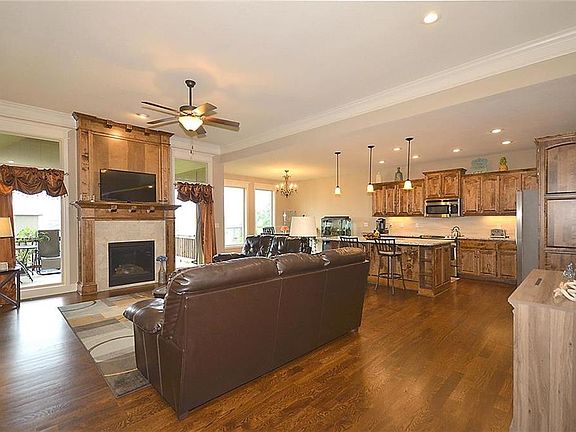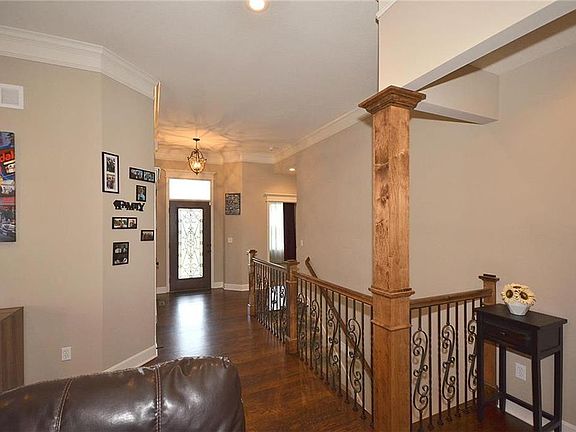 Decorative glass front door leads to entry foyer & opens to large great room. Gorgeous upgraded stained wood mantle over gas fp. Large walk-in kitchen pantry, kitchen island w/ undercabinet lighting. Family shoe cubbies at garage. Upgraded decorative stair spindles. Large mstr br & bath w/ tiled shower plus walk-in closet w/ season rack. LL walk-out w/ large family room, wet-bar & game table area. 2 LL bdrms at ground level w/ huge closets. Unfin storage area. Expanded garage, covered deck w/ fan. Yard irrigation.